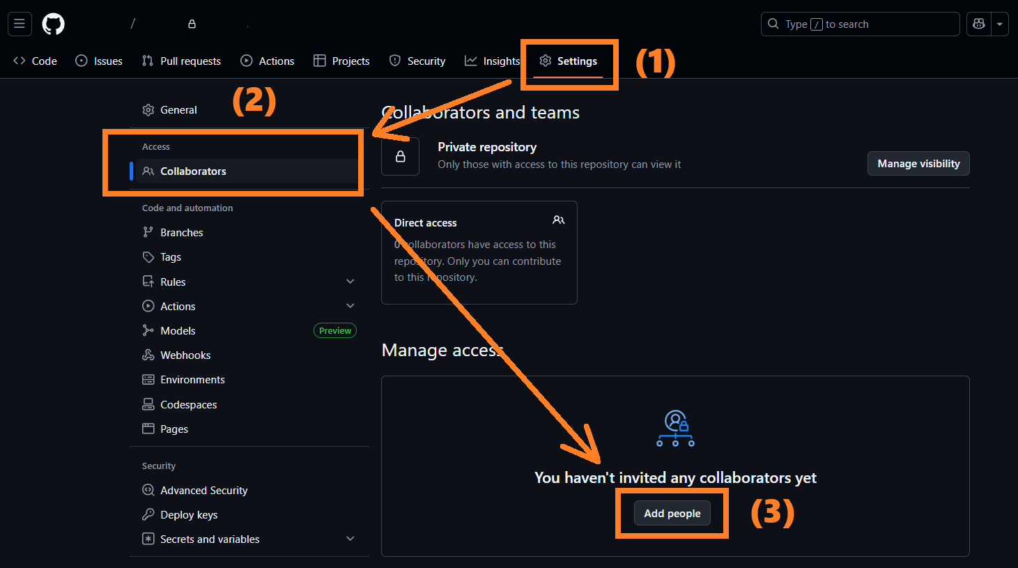 3. Collablorators 를 선택합니다.